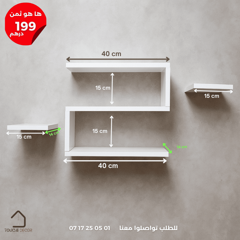 مقاسات مدروسة تسمح بعرض كتب، تحف، شموع، أو حتى نباتات صغيرة.ألوان تناسب جميع المساحات