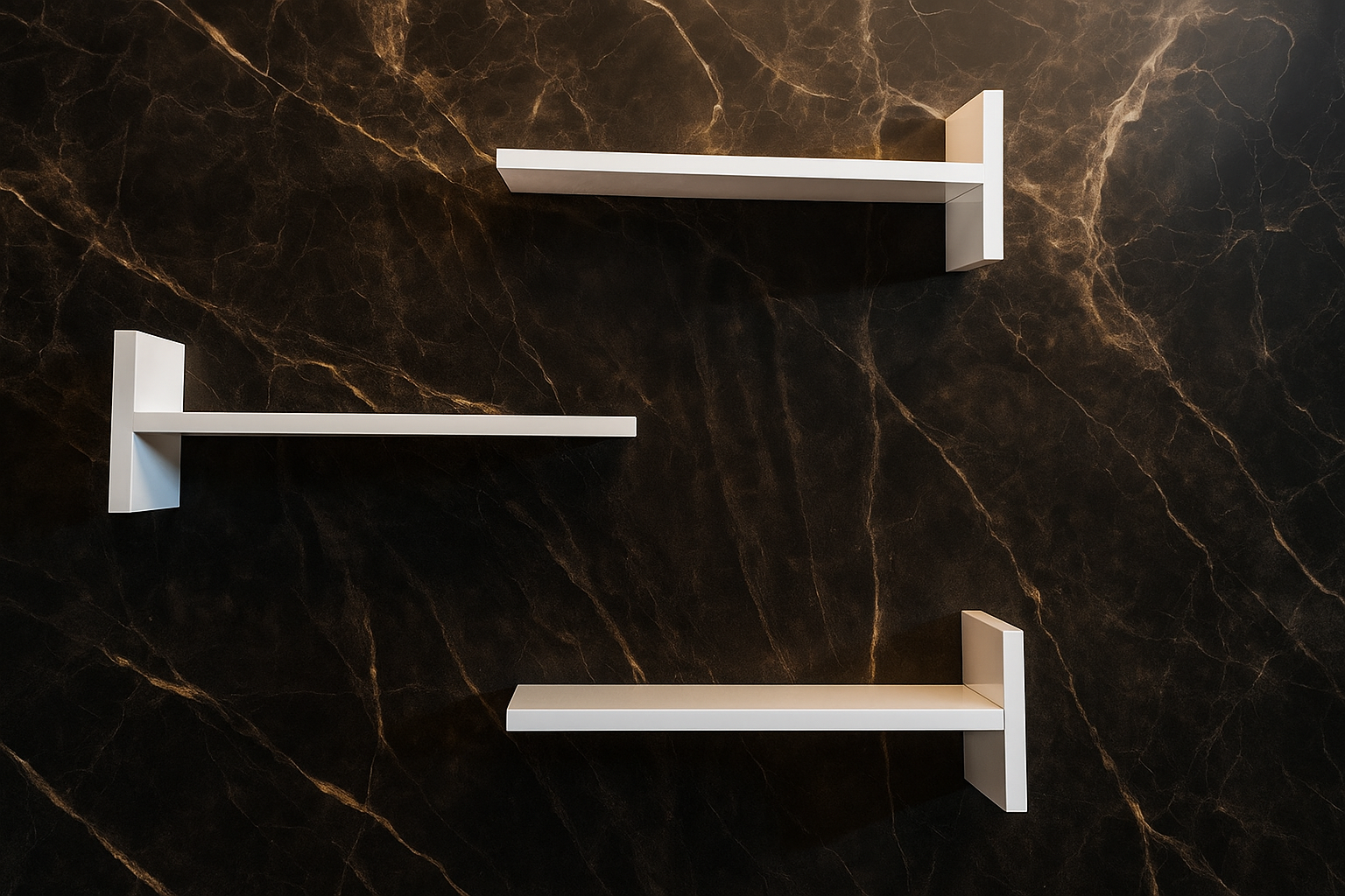 الرفوف مصنوعة من خشب MDF عالي الجودة، ما يمنحها قوة تحمل ممتازة وثبات طويل الأمد. اللون الأبيض العصري يتناسب مع مختلف أنماط الديكور ويمنح المكان شعوراً بالراحة والانتعاش.