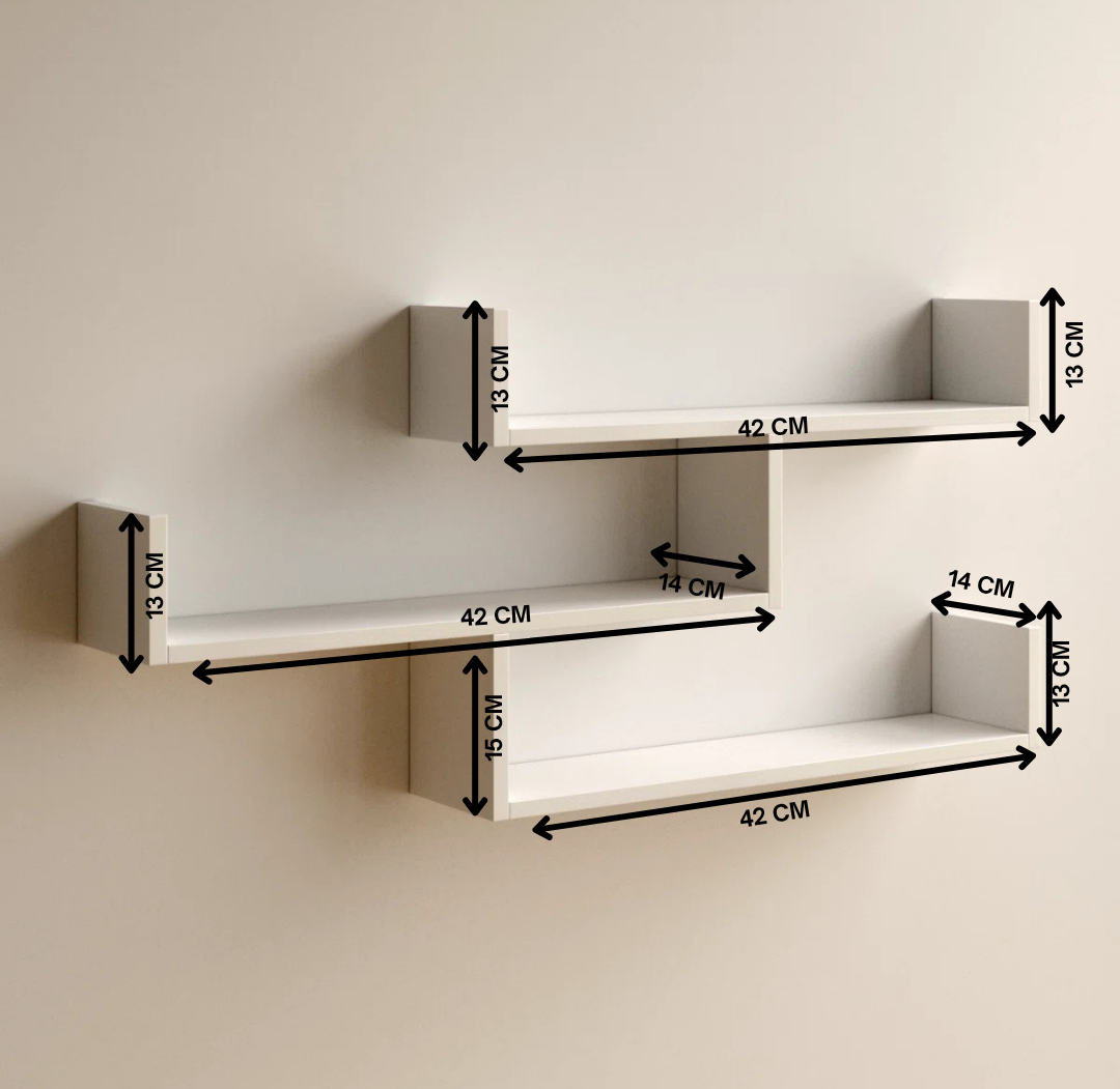 الرفوف مصنوعة من خشب MDF عالي الجودة، ما يمنحها قوة تحمل ممتازة وثبات طويل الأمد. اللون الأبيض العصري يتناسب مع مختلف أنماط الديكور ويمنح المكان شعوراً بالراحة والانتعاش.